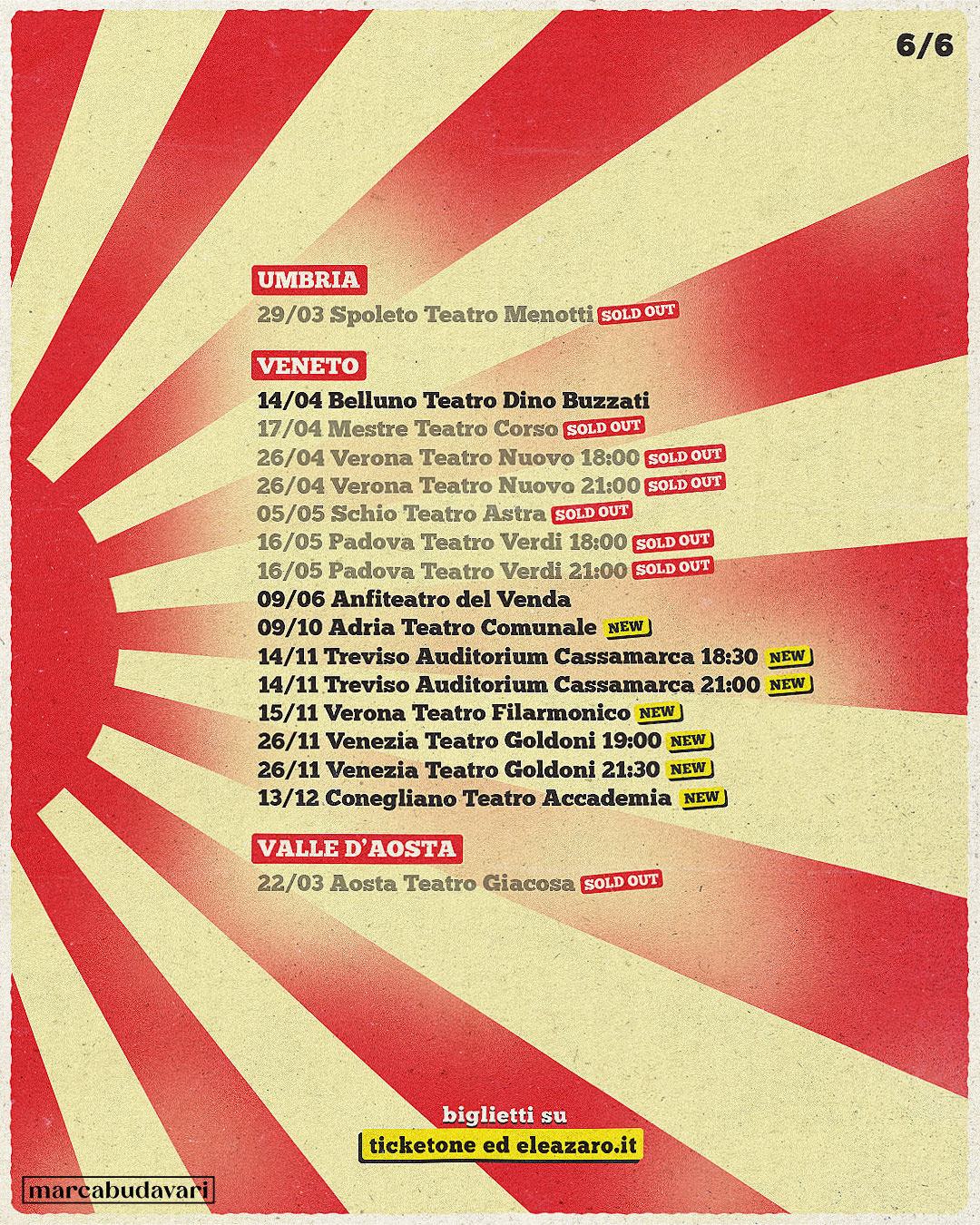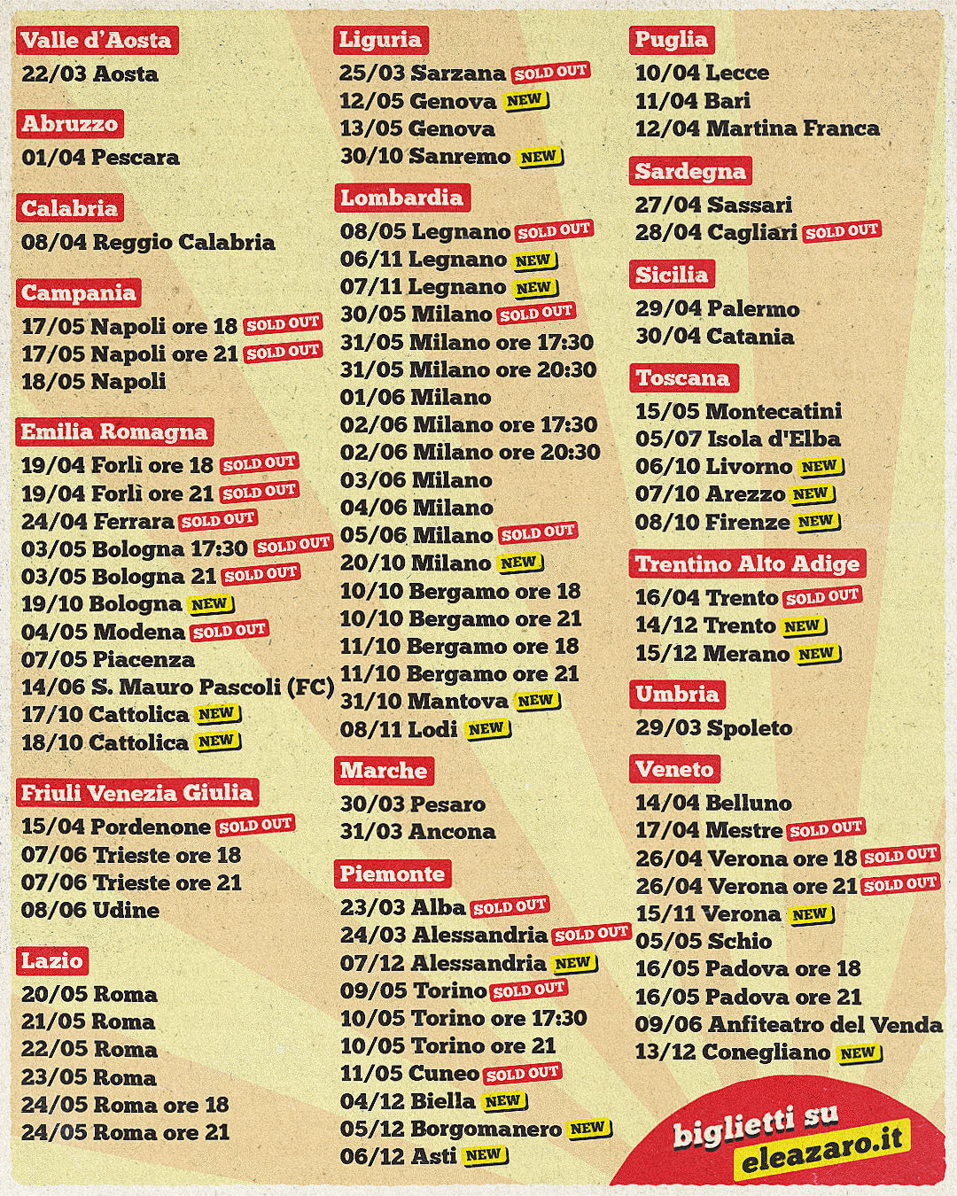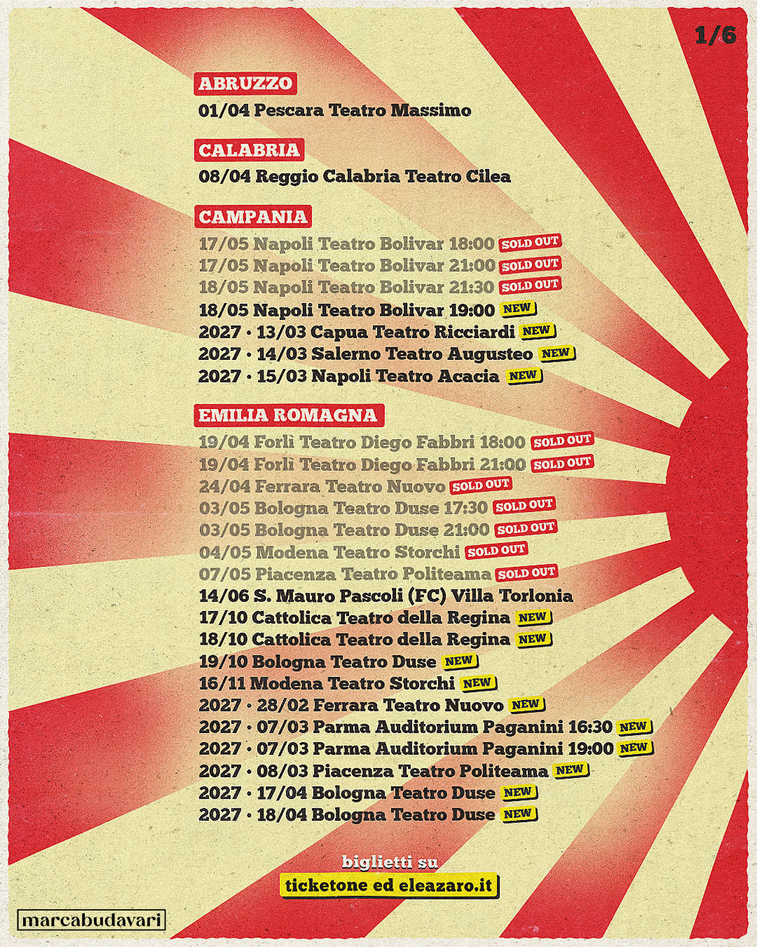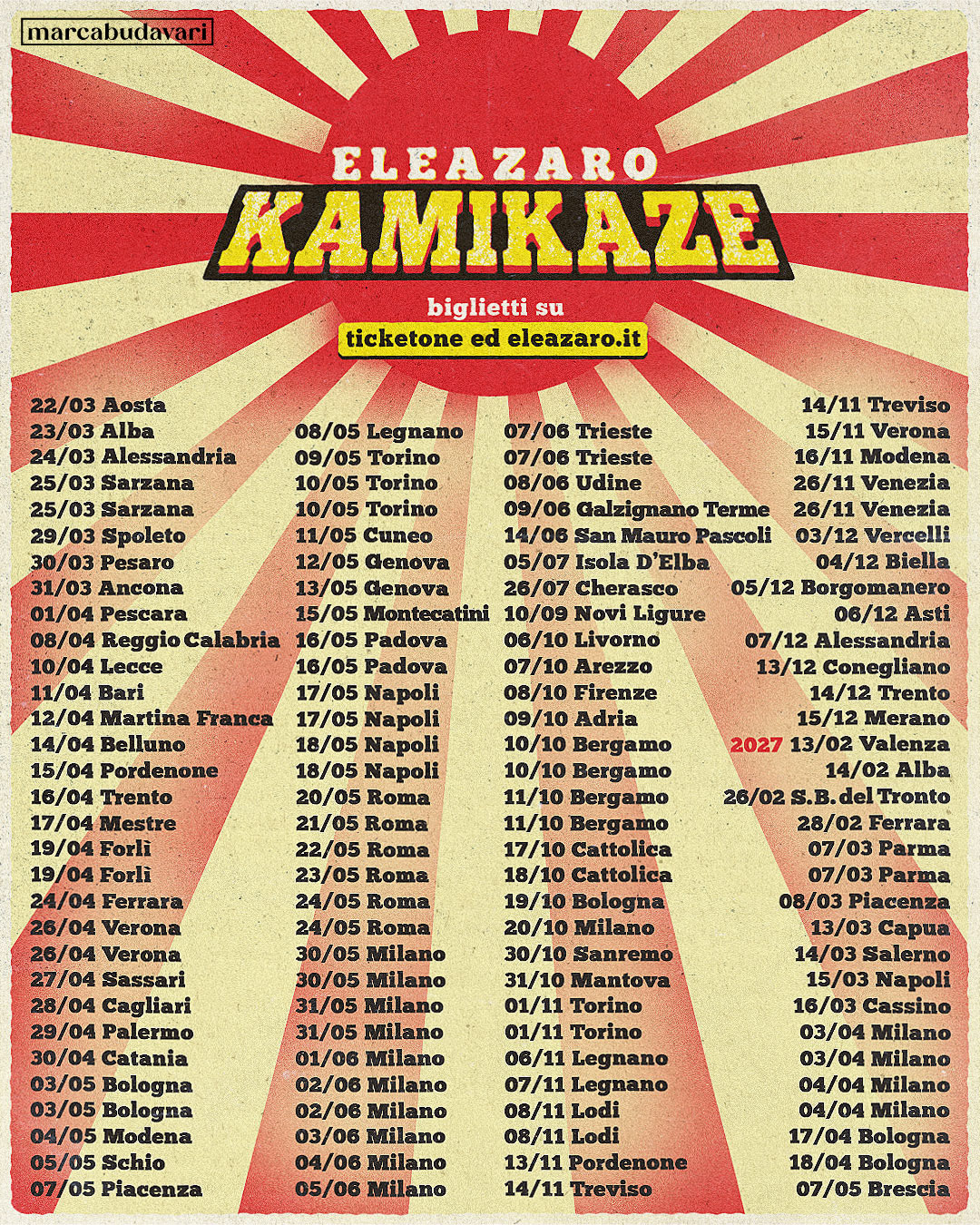 A whopping 120+ dates all over Italy throughout 2026 and 2027.