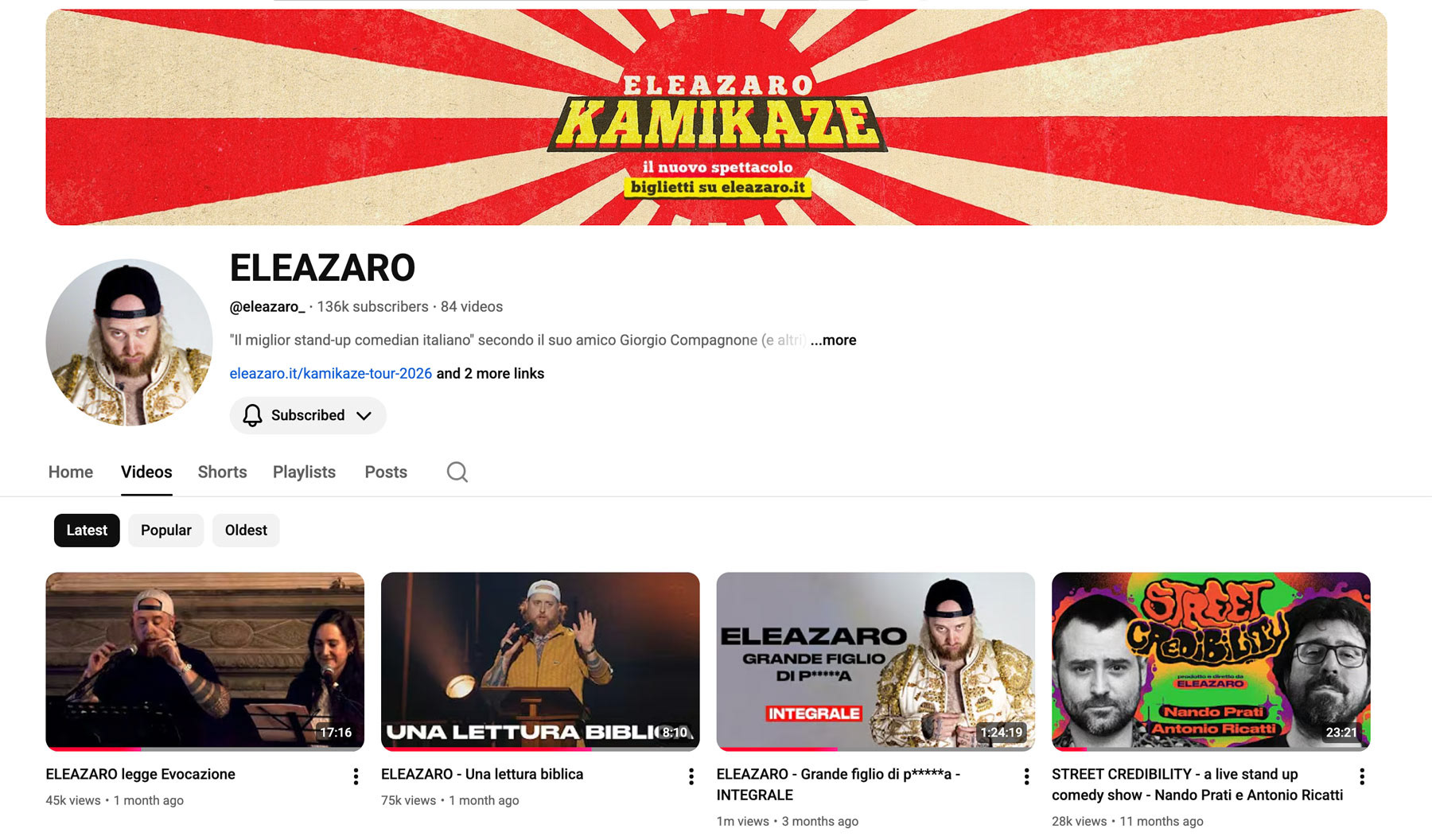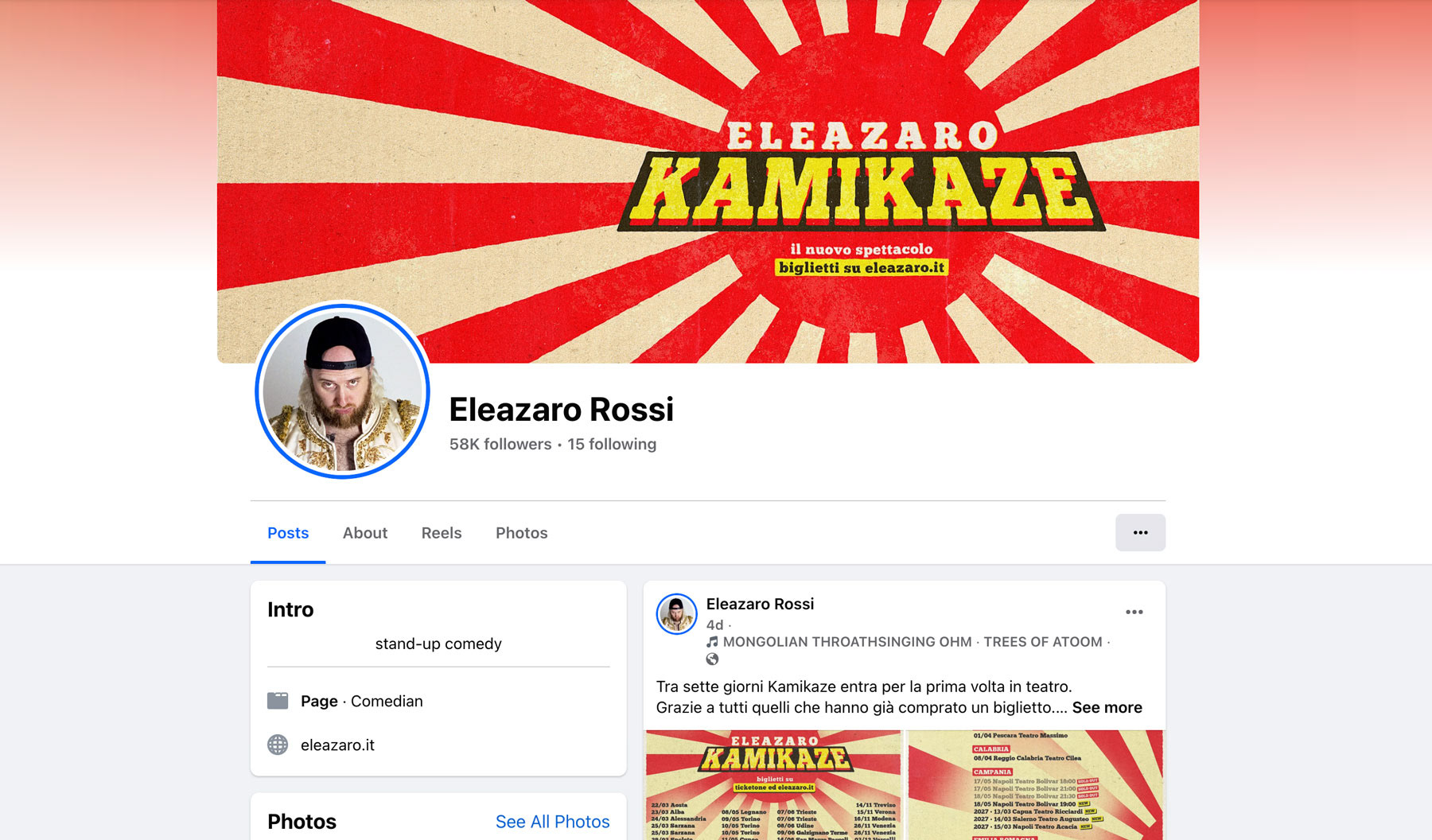 Italian comedian Eleazaro Rossi is officially on tour with his brand new stand-up comedy show 'KAMIKAZE'.